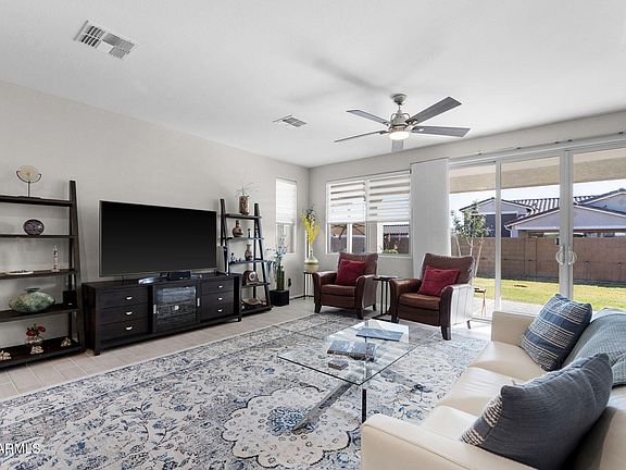 Looking for a modern home with practical space inside and out? This 2022 Casa Vista property offers a bright, open layout that connects a spacious great room to a kitchen with quartz counters, induction cooktop, walk-in pantry, and generous dining area. Natural light enhances the easy flow of the home, making it comfortable for everyday living and entertaining. Step outside to a covered patio and low-maintenance yard with room to relax or gather. The 3-car garage configuration includes an RV bay with front and rear access, offering options for storage, hobbies, or workspace. Energy-efficient features include dual-pane windows and owned solar with loan assumption. Well maintained, move-in ready, and located in a community with walking paths and a playground.
