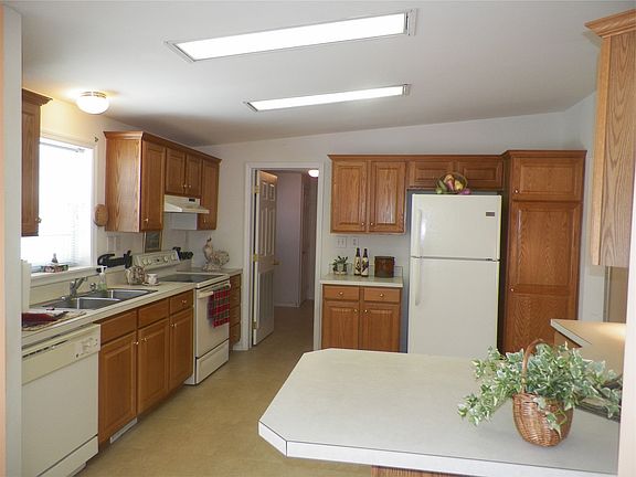 Relax on the outside front deck of your home or slide the inside glass door separator to enter a bright, comfy sun-room and enjoy your early morning coffee. A fantastic open floor plan provides several options for furniture placement as you survey the roomy living and dining room layout. The spacious kitchen with plenty of cabinets and a pantry closet comes complete with a refrigerator, self cleaning oven, dishwasher and microwave. Through the kitchen is the laundry/utility room and another entrance from the outside. There are two nice size baths and two bedrooms with walk-in closets. This home also comes with a newer Hot Water Heater. Stop by to check it out!