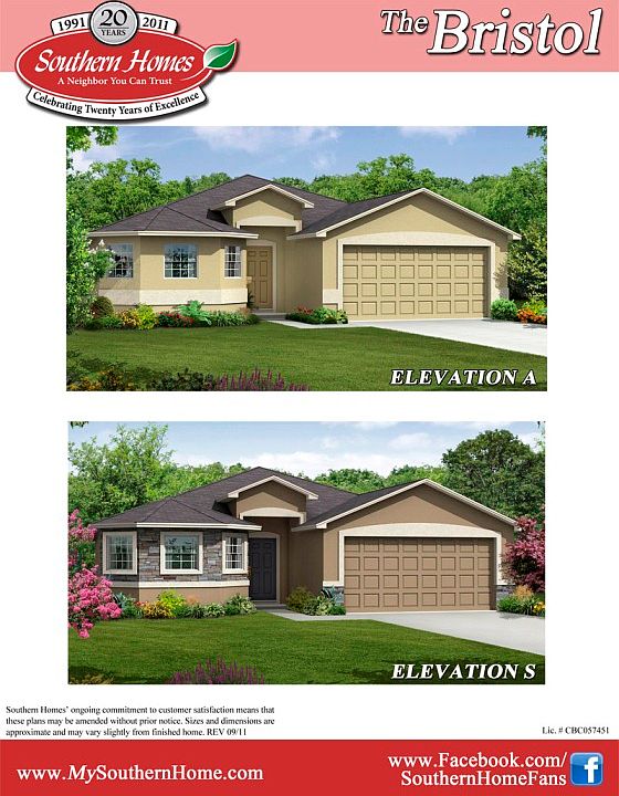 An airy, open floor plan and abundant family gathering spaces characterize the Bristol. The entry foyer is open to the great room, ideal for large gatherings of family and friends. The over-sized kitchen will please any cook, with its pantry and cozy features. The large great room will comfortably accommodate your furniture, and it has a door leading out to the patio. The owner s suite is thoughtfully set off at the back of the home for privacy, and features a spacious his and her walk-in closet and private bath. The rest of the bedrooms and bathroom are set at one side of the home along with the two-car garage.