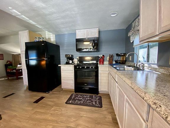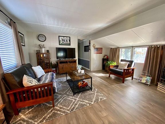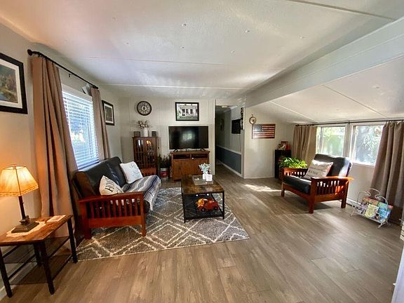 Beautiful, bright & well-maintained manufactured home in 55+ mobile home park. This home was completely remodeled and includes a new roof, water heater, wall insulation, walls, fresh paint, new toilets, vanity, new appliances and kitchen cabinetry that has brought this charming home back to life. The 792 sq ft home features 2 large bedrooms and 1 bathroom with spacious floor plan. Ample sized kitchen with plenty of counter space and dining area leads to large living room. Bonus sun room leads to picturesque fully fenced backyard. Park rent is $600 per month and includes water, sewer, and trash. All this within minutes from town and the Rogue River. This is a must see!!