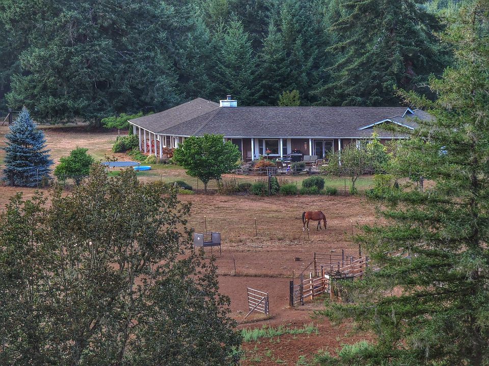 Elk Creek ranch is nestled in the Oregon Cascade Coastal Range. This property affords the owner to operate a cow and horse facility. Excellent fencing and cross fencing with Aussie wire and High tension Electric fencing. From every room of the home a territiorial view of the coastal range is possible. The property, with end of road privacy, is only 5 minutes to the town of Elkton. The owners enjoy watching the deer, wild turkey and the occasional elk that visit the property. Elk Creek runs along the eastern side of the property with the enjoyment of cool waters during the summer with Salmon and Steelhead viewing running upstream to spawn each year. The ranch infastructure includes several Qousent Huts for the horses which allows the horses a dry outside exercise area to use year around; Hay Barn and Shop with a locking tack room. Due to the rich soils, the ranch currently supports over a dozen horses and a plump heard of Angus cattle. Its location allows for a 35 minute drive to the Oregon Coastal community of Reedsport or just 1 hour to the Eugene Metro area Airport.
