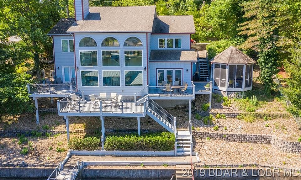 Spectacular main channel views with cove protection located off popular KK Road in Osage Beach in beautiful Lake of the Ozarks at the 21 MM. Close to shopping, dining, golf and fun waterfront boating activities make this an ideal location by land or water. You need to see this home for yourself, the abundance of light, the views plus the gentle lot and sensational open concept floor plan will impress! Some of the features include: Offered fully furnished, 3 huge bedrooms - all ensuite, soaring fireplace, windows and ceilings, updated kitchen, butlerâs pantry & laundry room combined, designer colors, outdoor screened gazebo, multiple decks with room for everyone and a 2 well dock that will accommodate up to a 40â boat. Looking for a great investment as well? Proven income of over $40,000 annually. Take a look today and be sure to watch the video!