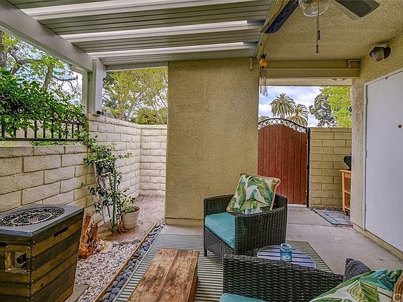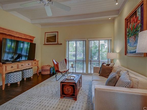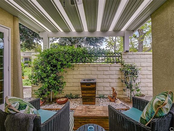 Cozy California Cottage SINGLE LEVEL 2 Bedroom, 1 Bath home, MONTEREY floor plan, End Unit with no one Above or Below. Completely Private and Remodeled Open Floor Plan with Upscale Finishes throughout. Recent home improvements include, all New Dual Pane Windows and Interior Doors, Engineered Hardwood Flooring throughout, Recessed Lighting, Ceiling Fans, Central Heating & Air, Electrical System, and Electrical Outlets equipped with USB ports. Light & Bright Open Concept Kitchen includes, Custom Cabinets, High End Bosch Cooktop, Convection Oven & Dishwasher, Skylight, Soapstone Countertops, and Polished Quartz Kitchen Island with Seating. Extra Large Living Area with 10 ft Ceilings and White Wood Beams, Directional Lighting and Wooden Blinds. Walk down the Hallway into your Main Bedroom with Closet Built-Ins, Designer Bathroom enhanced with Italian Carrara Marble Basketweave Flooring and Trim, Ceramic Tile Walk-In Shower and Shower Seat, Carrara Marble Countertop with Newport Brass Fixtures and Solar Tube for natural lighting. Just around the corner you will find your Inside Laundry Room hidden behind trendy Barn Doors. Don't forget to check out the Guest Bdrm with French Doors to your private Outdoor Retreat with Vinyl Patio Cover and Outdoor Ceiling Fan. Patio has built-in Storage Space too! No expense was spared on this gorgeous Upscale Designer Remodel! Come enjoy life in the Village by strolling along the creek, horse back riding, or playing golf and lawn bowling!
