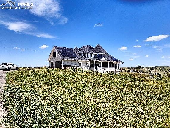 This spacious home is located on two lots in Elk Creek Ranches and includes 2 wells. It boasts nearly 6000 square feet of living space in the 2 stories plus finished walkout basement as well as a 30x80 outbuilding, 2nd building and 15+ acres of land making this a rare find at this price point. The main level of the home includes a primary bedroom with large ensuite, dedicated office, formal dining, 2 story great room, kitchen, laundry and formal dining, with walkout access on both sides to a covered deck that shows off the amazing views and beautiful acreage. Upstairs you will find 3 secondary bedrooms, 2 bathrooms and a bonus room over the garage. The walkout basement is the perfect retreat with a large family room, dedicated workout room, large media room with sofas and screen, bar area, large storage rooms and walkout access to the covered patio space. While there so many amazing features including radiant heating, solar panels, central vacuum, upgrades windows, ICF Construction and more; this home does need work to bring it back to its original grandeur both inside and out. It will be a great fit for a buyer seeking an opportunity to purchase acreage in this sought after location with a large home, that has vision to see beyond the projects and visualize what this home can be with the needed work.