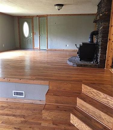 JUST REDUCED 1976 square feet 4 bed 2 bath home on 8 acres. Home is just minutes away from Fayetteville on paved roads. Home features wood fireplace and stainless steel appliances including refrigerator. Ceiling fans, hardwood floors and nice utility room. Windows, roof and a c were replaced in 2007. Property is very secluded for quiet country living with a shallow pond, an outbuilding, and a 30 x 30 metal truss shop with concrete floors. Shower in master bedroom needs finish out, parts are there.