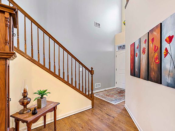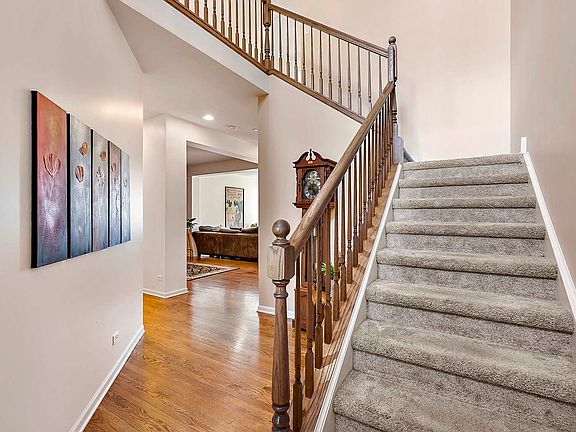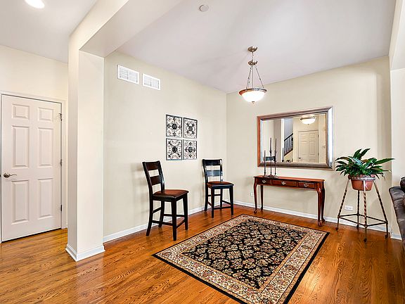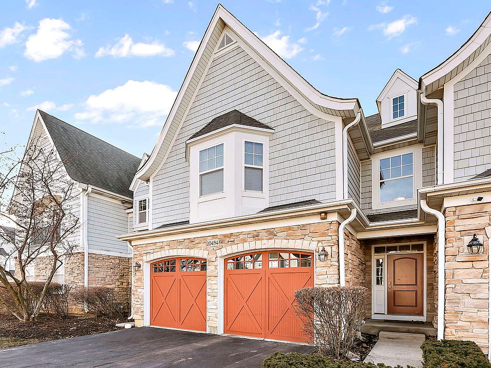 Classy townhome with finished basement in super convenient location! Hardwood floors t/o main level. Cherry cabinetry, granite counters, stainless appliances, pantry, breakfast bar, and spacious eating area with doors to private NEW deck. Open layout features main living area with stone finish surround fireplace and loads of natural light. Dining room can accommodate your favorite suite or be an extension of the family/living room. Powder room with pedestal sink. Large guest closet. Primary suite with double door entry, sitting area, bay window, TWO walk-in closets, lavish bath with two sinks, private water closet, separate shower and tub, linen closet, and cherry and solid surface vanity. Second floor laundry with full-size washer & dryer plus shelves. Bedrooms 2 & 3 offer plenty of space and generous closets. Hall bath with stone finish tile floor and tub/shower. Finished basement with full bath, second family room, and den/BR. Two-car garage completes this tony townhome close to train, 53, health clubs, etc. Walk to shopping, restaurants, theaters, park, and conservancy. Easy living! I know you'll like it!!