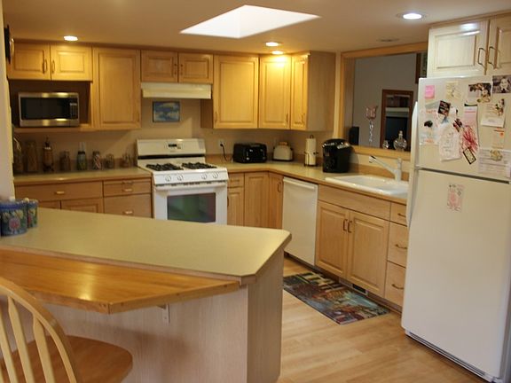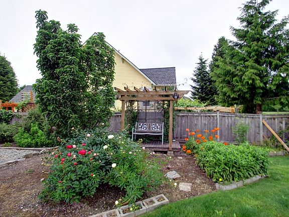 Well maintained rambler on corner lot with RV parking. Great kitchen with skylight, extended eating bar and pass through opening to living room. Vaulted ceilings, gas fireplace in living room. lovely master suite with walk-in closet, tiled shower and jetted tub. Extra roomy addl bedrooms. Two sunrooms to bring the outdoors in. Gorgeous fenced yard with fruit trees, blueberries and numerous mature plants. 12X12 outbldg. Convenient location just minutes from Burlington, with a country feeling.