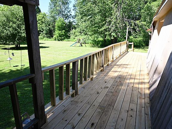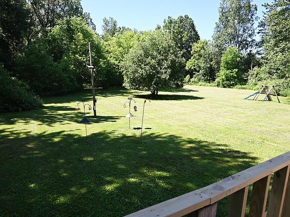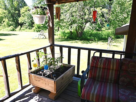 As you pull in the driveway, you typically are greeted by some sort of wildlife.... squirrels, turkeys, deer, etc. If not in the front yard, they certainly are hanging out in the backyard under the bird feeders or under the apple trees. In my visits to this property, I have also seen many different species of birds including baltimore orioles and several wood peckers. The wrap around and covered porch is a great spot to wildlife watch from 3 sides of the home. Take a walk out back and check out the Bad River, which cuts across the property for several hundred feet. Once you cross the river, you have around 25 acres to hunt that is all wooded with a small pond and a couple openings for food plots. There are no shortage of deer in this area and agricultural fields border the property to the west and the north.
