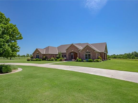 16 ACRES -- BEAUTIFUL VIEWS -- 3850+ SQUARE FEET. Less than 5 miles to I-35 at the Washington/Goldsby exit. Priced to SELL! Safe room, large, over-sized 3 car garage, huge office, large kitchen with HUGE walk-in pantry, and equally large laundry room with special storage spaces. Tall cathedral ceilings in living room, incredible covered back patio large enough for entertaining, Anderson wood windows, master bedroom size is appx 24x18'. Scenic acreage allows views for 10-20 miles. Beautiful sunsets, and away from the hustle and bustle of city life, but only 12-15 minutes to Sooner Mall and West Norman. School bus picks up in front of the home! Circle drive invites friends and guests, but also great for family parking for the busy family! Spotless inside, no children actually raised in the home --- impeccable condition! New roof shingles just installed. Dual-fuel heat pumps -- 3 systems -- provide the maximum in home comfort.