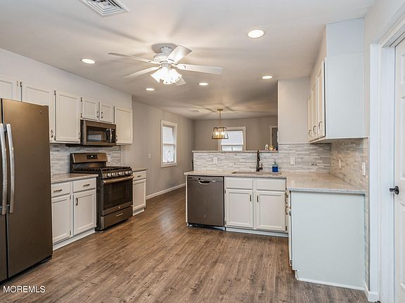 Perfect ranch living on a quiet street! This 4 bedroom home is freshly painted and move in ready! New windows, siding, hot water heater, duct work and HVAC system! Crawl space was cleaned out and moisture barrier installed - so nice! Luxury vinyl tile throughout the open floor plan, and carpeted bedrooms. 4th bedroom has a slider door to huge outdoor deck! Primary bedroom suite with 2 closets and updated en-suite bathroom - new tub and vanity. Kitchen has quartz countertop and Stainless steel appliances. Laundry room closet. 2 pantries. Smaller bedroom can be used as a den or office. Bring your imagination as this home is a perfect palette for all you decorating ideas. New windows and doors. Dining room open to living room and kitchen. Shed in rear yard.