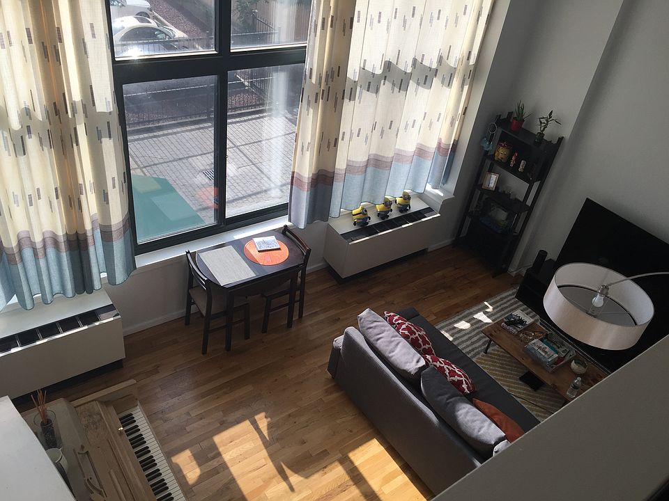 Welcome to this cozy loft featuring 1 spacious bedroom on the mezzanine level, located in the heart of beautiful Hamilton Park. Step inside and be greeted by soaring 14-foot ceilings and a striking wall of east-facing windows with incredible natural light. The home is thoughtfully designed with hardwood floors, a marble bathroom, an open living/dining layout, abundant closet space, brand new air conditioners, and the convenience of an in-unit washer/dryer. This luxury elevator building offers premium amenities, including: 24-hour doorman & security, fully renovated lobby and new elevators, fitness center & sauna, additional laundry facilities for residents, and onsite parking plus easy street parking nearby. Just steps from Hamilton Park, residents enjoy a vibrant neighborhood lifestyle with cafes, restaurants, tennis courts, basketball grounds, playgrounds, a dog park, and lush open lawns, perfect for recreation or relaxation. For commuters, the PATH stations (Newport, Grove St.), Light Rail, and the Holland Tunnel provide seamless access to NYC and throughout NJ. Plus, Pavonia/Newport Mall is just minutes away for shopping and entertainment. A perfect balance of comfort and convenience at Hamilton Park & JC. Suitable for one professional or a young couple. Terms and Info: - About the Building: Park Hamilton Condominiums (Private owner). - On-site fitness center & sauna, no fee. - Commute: 0.6 mi (about 8-10 min Walking) to Newport PATH Station, 0.7 mi (about 8-11 min Walking) to Grove PATH Station, lightrail is also around Newport PATH Station. - Lease: 1 year and can be renewed. - Deposit: 1.5 months of rent. - Broker fee: 1 month of rent, negotiable. - Move-in fee (paid to the building): $500 - Parking: $15 /year street parking permit will be applied & assigned for Jersey City Zone 6. Also, both off-garage and attached garage parking spaces with Fee. - Rent includes: water, hot water, garbage, sewage, and gym. - 1 small pet allowed. - The photos in the listing are times when owner was living there.