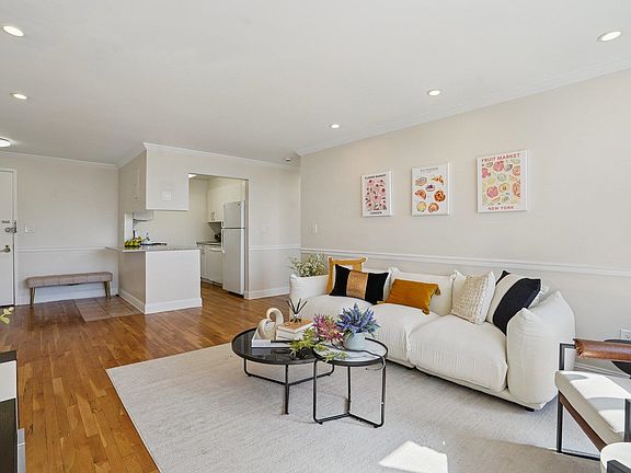 The interior boasts generous proportions and functionality. Both the primary and second bedrooms can easily accommodate king-sized beds. You will enjoy the comfort of three independent AC units with individual temperature controls. There is abundant overall storage space, including a massive walk-in closet in the primary suite and a Bosch washer/dryer in the unit. The home balances style and comfort with solid oak floors throughout and a crisp white kitchen complemented by sleek modern lighting.