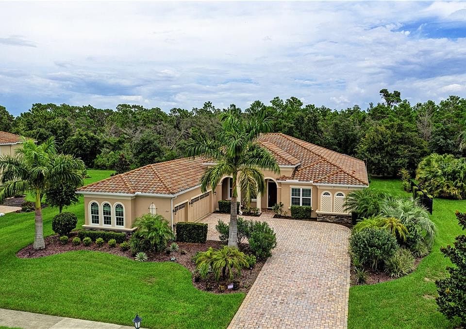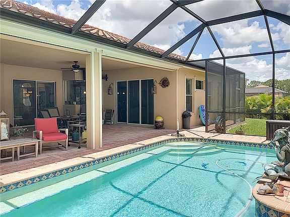 Own in the sought after community of Rye Wilderness. NO CDD taxes & LOW HOAs, ?? ACRE FENCED Lot, BARREL TILE ROOF, 3 CAR GAR side load, Upgraded PAVER DRIVE & LANAI, 20" TILE, ceiling fans throughout and custom window treatments. This 3100+ sq ft beauty has 4 BDs & 3 Full BAs. This seller is the original owner and has spared no expense on the added upgrades (post construction) totaling over $80k. As you enter this home it is expansive and impressive, sep formal dining rm & liv rm passes thru to the gourmet kitchen and den. Huge paver lanai with heated pool looking out over a real preserve. The Lg master is your personal oasis w/ dual closets & lam vinyl flooring. The large master BA has GRANITE DUAL SINKS, soaking tub and sep shower. All 3 baths have high, 36" granite vanities. The gourmet kitchen boasts staggered wood cabinets, stainless appliances, an island w/ sink (TWO SINKS total). One incredible ($$$) upgrade are the New PGT Impact windows in front facade complimented by the Storm Smart Screens & Curtains. Live with the comfort of knowing that you are hurricane ready in an hour. Hurricane electric curtains come down over the lanai for added protection. Numerous extras include: New pool filter pump, new hot water heater, home wired for a generator, new garbage disposal, Aluminum fencing in the backyard, Seamless Gutters, Up lighting on the landscaping, speakers in lanai & UV light in A/C to kill germs. This home will not last, call today for a private showing...