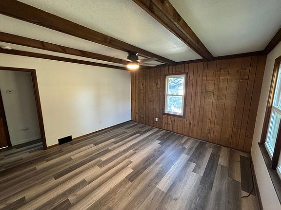 Welcome to this delightful three-bedroom, one-bath home that combines modern updates with a cozy feel. Freshly painted and fitted with contemporary fixtures, this inviting space is ready for you to settle in. Enjoy the new vinyl flooring and comfortable carpet that enhance both style and durability. With maintenance-free siding for easy upkeep and plenty of storage options—including a large unfinished basement and a detached garage—this home is an excellent choice for families or anyone looking for a practical and stylish living space.