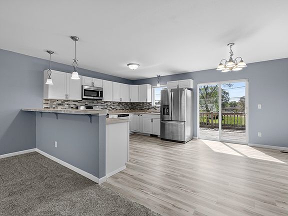 Welcome to this modern 4 bedroom, 3 bathroom home offering 1,719 sq ft of living space! This split foyer property has been freshly painted throughout and features brand-new carpet and vinyl plank flooring on the upper level. Head upstairs to a spacious open-concept Kitchen, Dining Room, and Living Room — perfect for both everyday living and entertaining. The Dining Room features a sliding glass door leading to the deck, overlooking your fully fenced backyard with alley access. The wrap around Kitchen setup offers lots of cabinet space and stainless steel appliances with ample  space for several people in the Kitchen at once! The Primary Bedroom includes a full ensuite bathroom with tiled floors, and two additional carpeted bedrooms are also located on the upper level, along with another full bathroom with tiled floors in the hallway. Downstairs, the lower level offers a carpeted Family Room with patio access to the backyard under the deck — ideal for outdoor enjoyment. You'll also find the fourth bedroom, a third full bathroom with tile flooring, the laundry/mechanical room and access to the garage. The attached 2-stall garage is insulated and sheet rocked, and just needs to be plumbed for heat to be installed — making it a perfect year-round workspace or storage area. This one checks all the boxes for comfort, functionality, and style! Schedule your tour today!