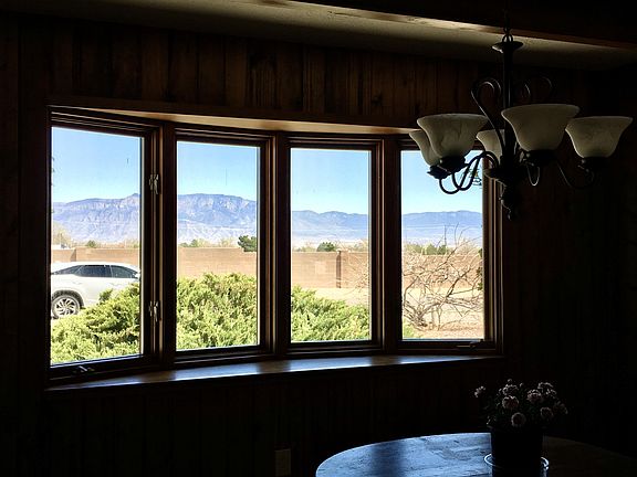 Multiple Offers Received! Centrally located in Rio Rancho. Close to everything yet private with mountain views. Beautiful brick 3 bedroom 2 bath one level home on large lot with amazing shop. Tongue and groove ceilings, built-in bookshelves, wood burning fireplace, breakfast nook, covered patio and more. Foyer enterance opens to real wood paneled greatroom with vaulted ceiling and wood burning fireplace. Oversized kitchen with ample counters and cabinets. Updated bathrooms! Fresh paint throughout. Covered patio and a beautiful backyard offering room to garden and fruit trees. A detached garage/workshop Approx 785 sqft.