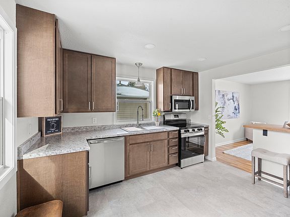 Welcome to your new home sweet home! Imagine waking up every day in this charming 5-bedroom house, where comfort meets convenience. This residence has been freshly updated, boasting hardwood floors that shine across the main level and breathe life into the space.  Foodies rejoice—the kitchen is a culinary dream with all-new appliances and enough room to dance around while your coffee brews. The main floor includes the primary bedroom along with two additional bedrooms, providing ample space for family, friends, or an elaborate wardrobe. Head downstairs and you’ll find two more bedrooms, cleverly designed without egress windows, paired with a 3/4 bath to make mornings easy.  Love to tinker or need extra space for your hobbies? The double deep garage, accessible from both ends, is your new best friend. It's perfect for projects or parking. The yard is partially fenced and begging for your green thumb or epic summer barbecues.  Nestled in a friendly neighborhood, the home is just a stone’s throw away from Parks and Schools. Commuting is a breeze with major highways nearby  Ready, set, pack your bags—this spot is all set to make loads of new memories!