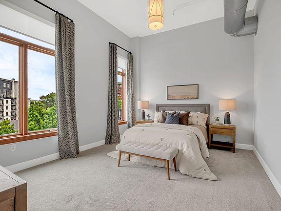 Easy walk to Centennial Park or Vanderbilt from this very spacious top-floor loft. This corner unit has high ceilings, larger balcony with city views, and an abundance of natural light. Throw out the notion of cramped city living; Every space feels Large and Open, from the kitchen and living room, to the bedrooms, bathrooms, and walk-in closets...even the laundry room is generously sized. Midtown Lofts is a fantastic mid-sized building in an excellent location, with a beautiful pool area and grill pavilion. Move-in ready with updated kitchen, new appliances and new floors. Includes parking space #18 in secured parking garage, plenty of additional street parking adjacent to the building. HOA fee includes water and gas.