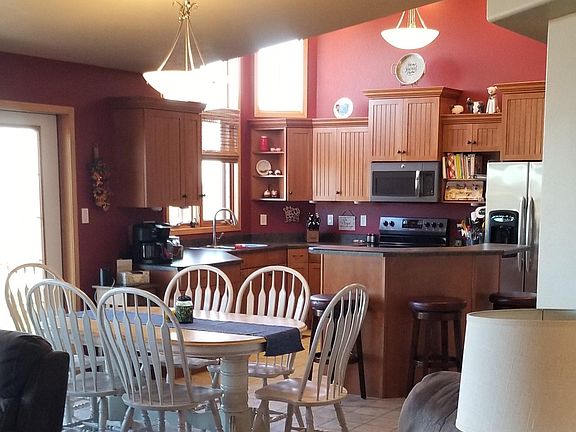 Uncommon Opportunity. Modern, meticulously maintained home with panoramic views. Private and peaceful with the mature tree groves and abundant wildlife on the 60+ acres. Contemporary kitchen with large pantry. Office/hobby room just off the kitchen. 5 bedrooms, 4 bathrooms and a recently finished basement. Master bedroom includes a full bath, walk-in closet, fireplace and walk-out door to a new deck. Laundry/mudroom/half-bath. Basement includes a TV room and large recreation area. New roof, gutters and Smart Siding. New decks and porch. Spacious garage with oversized garage doors. Geothermal HVAC and 17KW backup generator. 3 1/2 miles from town.