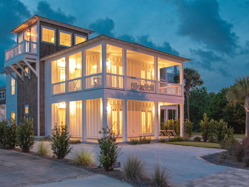 Take advantage of this rare opportunity to own a custom-built, Florida dream home providing ground up Gulf views and 10 acres of never to be built on, dedicated beach in the coveted Gulf front community of Sunnyside on the Gulf! No detail was overlooked in this custom home that is perfectly suited for a high income generating rental property or permanent residence. You will be impressed with every facet of this home from the nearly 800 square feet of shaded porches and balconies, 100% hardie board exterior, professional landscaping, paver lined, bahama rock drive providing parking for 12 to the private courtyard featuring a saltwater, heated pool. This home embodies the Florida Lifestyle! The interior is a luxurious retreat with high end finishes including Cali long board flooring, 8" baseboards, dual crown molding, custom coastal trim, 8' custom doors, designer lighting, custom cabinets, quartz counter tops, custom tile baths, large windows, dual French doors allowing natural light to flood the interior and a prominent open, floating staircase. The first floor features a large main floor/guest living area, a main floor/ guest master ensuite with dual French doors and a large tile shower, a second guest ensuite featuring an oversized tub/ tile shower an additional bedroom as well as a large laundry room. The second floor allows you to enjoy the best of the outside with large windows and dual French doors while enjoying the comfort of the inside. The area includes the living area anchored by a bold, shiplap gas fireplace, a large dining area to accommodate all your guest, a chef's kitchen featuring Thermador appliances, under counter lighting, custom backsplash, pot filler and a large island seating four perfectly complements this area. The area is completed with an impressive master suite encompassing a large custom bath with soaking tub, dual head tile shower a large walk-in closet and a private balcony overlooking the courtyard. The third floor showcases a sunroom wrapped in large windows revealing expansive Gulf views and a balcony allowing you to experience the Gulf breeze and calming sounds of the Gulf waves crashing onto the shore. The detached oversized garage is more than big enough to accommodate two large vehicles and your toys/tools. The carriage house above is stubbed and ready for finishing as you desire.