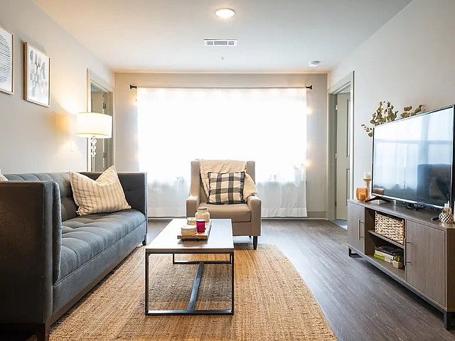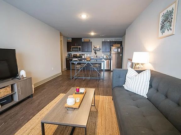 Fully furnished apartment, with a modern furniture package, a full-size washer and dryer, stainless appliances, and more. The 2 Bed, 2 Bath unit is 981. sq. ft. Walk in closet with a desk. Student housing, apartment 105 in building 6, room B. Apartment 105 in building 6, room B. There is a provided gym and pool.