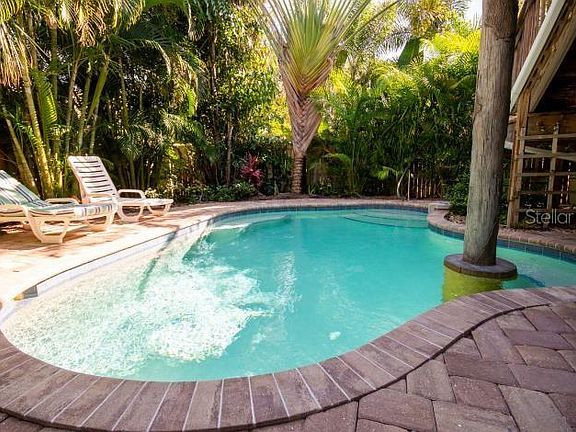 Wow, here is an island getaway just a block+ to the beach in the north end of Holmes Beach! Almost west of Gulf Drive (just two houses in). Handscraped hardwood floors throughout, all upbeat and colorful Florida decor with beadboard accents. Fully furnished and a thriving weekly vacation rental. Has a tropical private pool and a one car garage with lots of storage area. Elevated for better insurance rates. Completely gutted and updated duplex that was condominiumized in 2012. Granite counter tops, stainless appliances, master bedroom with private balcony. There is a second balcony with a southern exposure overlooking the pool and a nice outdoor seating area with flat screen TV poolside. Paver driveway. Rentals through www.amilocals.com