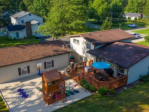 All anyone could ask for! You have finally found it! Enjoy family & friend time sitting around the fire in your all purpose "Great Room" combo-center kitchen island w/built-in pot rack offers easy flow & entertainment space. Updated oak kitchen w/Corian counter, new mahogany color flooring, pine beam vaulted ceiling & cherry wall accent the LR area. Lower level Fam. Rm. w/bar & walk-in storage/pantry. Rear deck. Att. 2 car garage & Det. 4 car--both heated - lift & 100 amp elec. Updates abound to lighting, flooring, roof, windows, gutter guard, appliances, LED lighting, entry doors, bath upgrades, AC wall unit, attic fan, 200 amp elec. 24x40 newer garage . Close to shopping, schools, restaurants.Centrally located to Erie, Pittsburgh, Cleveland. Short drive to Pymatuning or Conneaut Lake. MOVE IN READY!