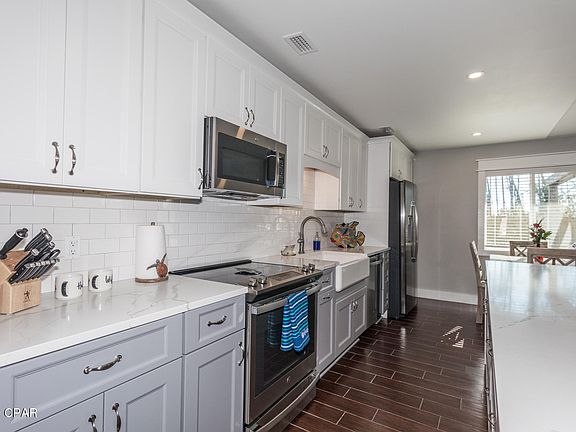 HOME IS MOVE IN READY....NEW ROOF,WINDOWS,HVAC.....TILE WOOD FLOORS, RECESSED LIGHT THRU OUT HOME...TANKLESS HOT WATER HEATER...QUARTZ KITCHEN COUNTER TOPS..ALL NEW INSULATION..LOTS OF ROOM IN BACK YARD FOR BOAT, RV AND OTHER TOYS OF YOUR CHOICE...THE HOME HAS THREE BEDROOMS WITH TWO BATHS THIS HOME IS THOURGHLY UPDATED STOVE IN HOME IS BEING REPLACED BY ANOTHER STOVE ..