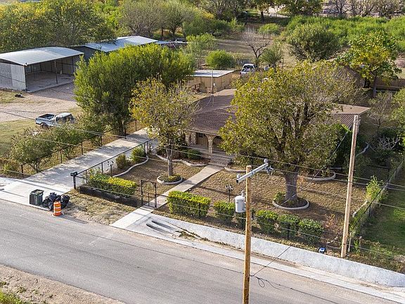 Lovely South Del Rio home situated on approximately 2 acres, fenced all around, with newly added closets, remodeled master bathroom, and kitchen with granite countertops. This property includes work shops, built in security system, and barn stalls. An additional bonus room that can be converted into a man cave, playroom, or a mother-in-law suite. This property comes with maintained landscaping and mature trees, which is a South Del Rio staple.