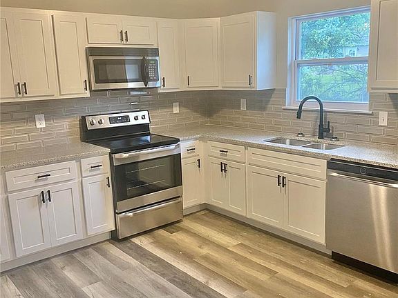 Cozy 3 Bed 1.5 Bath Ranch home with 1 car garage in a Cul de sac. This home has a new roof, siding, fascia, soffit, & gutters. Covered porch welcomes you to the large living room with new laminate flooring throughout the entire home. The kitchen has been newly renovated, as well as both bathrooms. All new doors & baseboards throughout. Master bedroom suite has ceiling fan and half bath. New windows were installed as well, along with a fresh coat of paint for the entire home. Large fenced in back yard with patio for entertaining and storage shed. Within walking distance to many parks. Close to shopping and Hwys 70, 79, and 40/64. This home Does Not have a basement.