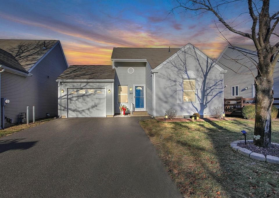 Welcome to 205 Alvord Place, a charming 2-bedroom, 2-bathroom, 1-garage condominium nestled in the highly desirable Alvord Place community of South Hadley. This single-story home, built in 1989, offers 1,044 sq ft of thoughtfully designed living space and a lifestyle of comfort and convenience. The open-concept layout is perfect for relaxation and entertaining, with plenty of natural light creating a warm and inviting atmosphere. The updated kitchen is both functional and stylish, ready to meet all your culinary needs. The generously sized primary bedroom features a private en-suite bathroom for your comfort and privacy. The additional bedroom & bathroom are deal for guests, a home office, or personal hobbies. Step outside to a recently installed Trex composite deck, designed for durability and low maintenance. Enjoy forced heat and central air conditioning for optimal climate control in every season. Alvord Place is known for its well-maintained common areas and friendly atmosphere!