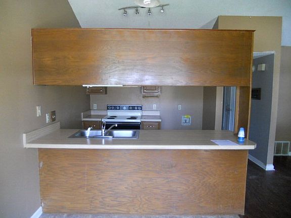 Cozy Cottage home with two bedrooms and one bathroom. Open plan features a fireplace in the Great Room and a Bay Window eating area in the kitchen.