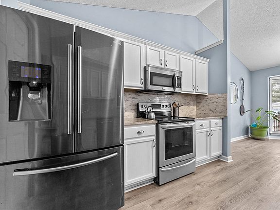 Cozy, one level bungalow with inspiring spaces & prime outdoor entertaining area. The main living space is filled with natural sunlight, vaulted ceilings & an open layout. This well maintained home has Brand new floors (main area), a Newer HVAC system & new water heater. The kitchen features a curved island, backsplash & stainless steel appliances.Snuggle on up next to the gas fireplace with a cup of hot cocoa while watching your favorite Netflix series and don't forget to check out the fenced backyard & oversized deck perfect for weekend bbq's. Additionally there is a large concrete pad perfect for an outdoor basketball court/pickleball court or hot tub area with a firepit. The possibilities are endless! Reasonable Hoa fees & wonderful location just minutes from Knightdale Station, Knightdale business District & Raleigh. Easy access to hwy 64, I540 & I40.
