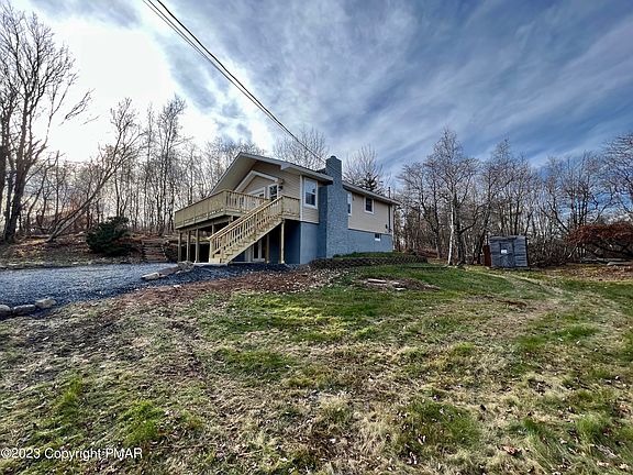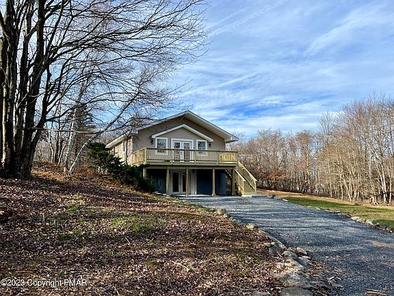DON'T MISS OUT on this BEAUTIFUL fully renovated chalet home with endless possibilities! Thrive with a Short-Term Rental (Air BnB), escape to a tranquil vacation home, or make it your forever residence! As you walk up to the newly built deck this 3 bedroom 2 full bath home features cathedral ceilings in the living room with a newly done brick faced wood burning fireplace for additional heating. The beautifully updated kitchen delights with granite countertops and all stainless steel appliances. On almost a half of an acre you can enjoy the privacy of a wooded backyard. *New Roof* This community also offers four lakes, an indoor pool, playgrounds and is close to all major Pocono attractions; Camelback, Kalahari, Mt Airy casino, the outlets and so much more! Schedule your private tour today