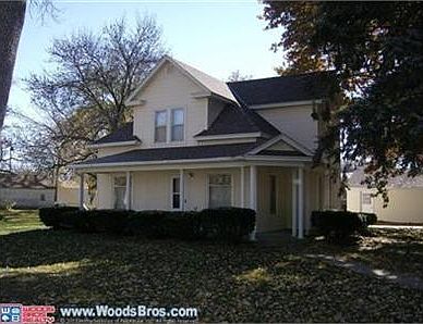 Large shaded corner lot is the location for this 2 story 3 bedroom home with great curb appeal. This home features a wrap around porch, vinyl siding and metal soffits, 24'x28' garage with work bench, garden plot and storage sheds. Inside this home is very clean and with some updates will offer enjoyable small town living. There is a large eat in kitchen, 1st floor laundry & mechanical room with a newer furnace and A/C, a first floor bedroom and a second floor with 2 more bedrooms and lots of storage space. This home was upgraded with wall & attic insulation.