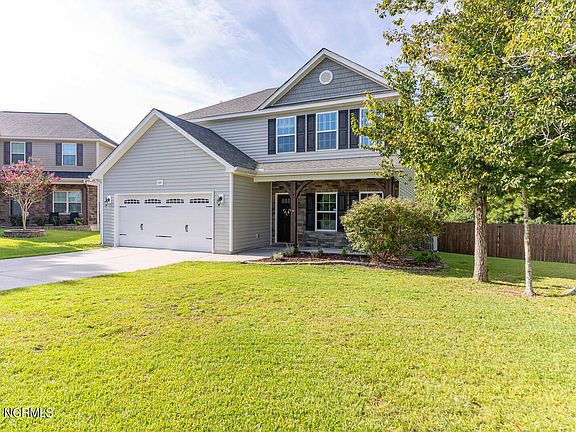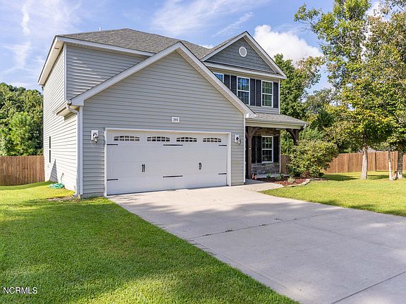 NEW AND IMPROVED PRICE!!! Welcome to 205 Ashton Ct in the Peggy's Cove subdivision! This exquisite residence is nestled on a cul-de-sac and 1.53-acre lot. As you step inside, the inviting laminate flooring guides you through the foyer, dining room, and kitchen, setting the tone for the warm and welcoming ambiance that flows throughout the entire 2,023 square foot home. The kitchen features stainless steel appliances, ample counter and cabinet space with a bar height counter section for additional seating. Adjacent to the kitchen, the living room is graced by the fireplace, perfect for creating a cozy atmosphere on chilly evenings. The open-concept layout seamlessly connects the living spaces. The freshly stained deck and fully fenced private yard invites you to bask in the beauty of the natural surroundings, as the property backs to trees, creating a serene backdrop that enhances the sense of tranquility. Upstairs, discover the en-suite, with a tray ceiling that adds a touch of elegance. The en-suite bathroom offers a dual vanity, walk-in shower, and a separate soaking tub. Two additional well-appointed bedrooms, each with a ceiling fan for comfort. The shared loft area provides a versatile space that can adapt to your needs. Laundry room is Conveniently situated on the second floor. The roof was replaced in 2018, provides peace of mind for years to come. Home features updated paint and lighting throughout. Only 2 miles to Camp Lejeune South Gate! $1500 CREDIT TO BUYER IF USING PREFERRED LENDER.