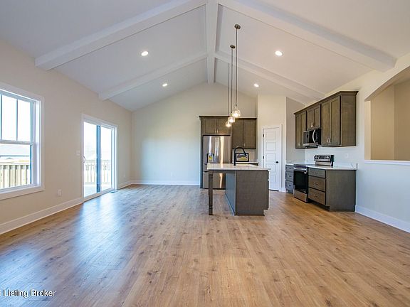 This gorgeous new construction home built by Latitude Builders features 5 bdrms & 3.5 baths, including a finished walkout basement. You will love the stylish stone & Diamond Kote siding exterior. The interior boasts high-quality finishes such as Walter's cabinetry, a pantry, & stone countertops, all complemented by an inviting fireplace & vaulted ceilings in the main living areas. Designed with a split bdrm floor plan, the home offers privacy & convenience, featuring a half bath on the main level for guests & a Jack and Jill bathroom serving the main level guest rooms. The primary suite is a standout, showcasing beautiful tray ceiling details, a double vanity, a walk-in tile shower, a spacious walk-in closet, & direct access to the laundry room. The finished basement adds 2 large bdrms