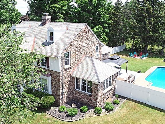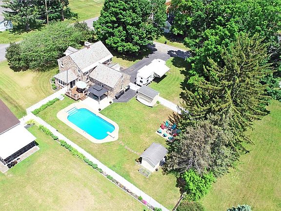Gorgeous all stone Colonial home sitting on a beautiful coner lot atop Barringer Rd. in German Flatts. From the second you look at this home all you can think about is what great character it has. From the rich stone to the front columns to the slate roof, they just don't make them like this anymore! When you enter this warm and inviting home you'll see the classic Rochester hardwoods through most of the house. On the first floor you have a large fireplaced living room with beautiful windows which allow for an abundance of natural light. On this floor there is also a dining room, sunroom, half bath and the kitchen. Upstairs on the second level there are 4 bedrooms and a full updated bath. The walk in attic has tons of storage space.The basement which is partially finished is as dry as a bone. In the huge yard you will find the in ground pool with newer pump and a Trexx deck, newer patio and relaxing firepit area. There are 2 sheds to accommodate all of your outdoor furniture and then some. This area is completely fenced in. The attached 2 stall garage has tons of space and has heat and electric. You will not find another home like this so don't delay, call and get in today!
