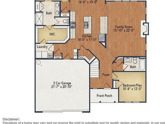 The Bristol floorplan with principal bedroom on the main floor. Lovely large kitchen with 2 granite covered areas for prepping food or eating at. 3 further bedrooms - 2 of these on 2nd floor. Large practical bonus room upstairs. On crawl space.