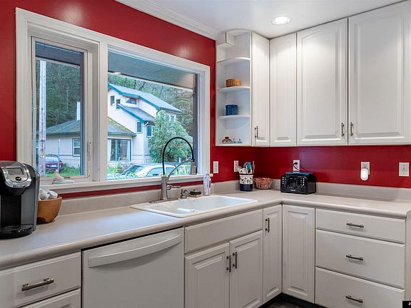 Your downtown oasis awaits! You won't want to leave this beautifully remodeled 3BR/2BA 2,572 sqft home with 215 sqft workshop. Take in the gorgeous views from the huge living room windows. The space is perfectly cozy with oak hardwood flooring and a pellet stove insert. The kitchen is beautifully remodeled with contemporary white cabinets, gas range, tile flooring, and a view of Mt. Juneau and the Highlands neighborhood. Downstairs, a spacious hallway leads to the additional living space which includes the master bedroom, laundry room, second bedroom, and the large family room with propane stove. The master bedroom has direct access to the downstairs bathroom as well as plenty of closet space. The spacious family room has huge windows to let in the natural light all day long. Heat pumps throughout the home provide an efficient heat source. Outside, the fully fenced yard is a great space to enjoy the sun on the open deck, and spot mountain goats climbing around Mt. Juneau right above the home.