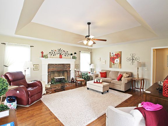 RARE FIND-4 bed/2 bath home all one level on a cul-de-sac! Fireplace & trey ceiling in living room with entry foyer, very spacious kitchen, lots of counter space & stainless appliances. Home has lots of natural light throughout- very well maintained inside and out! Outdoor features a blacktop driveway, covered front porch, private back deck located off the kitchen & storage building!