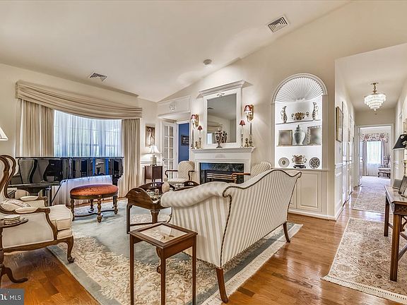 Beautiful and thoughtful total 2018 renovation. Top floor 1427 square foot unit. Ceramic tile Foyer, vaulted Living Room with gas fireplace, vaulted Dining Room. Stunning eat-in gourmet Kitchen with stainless steel appliances, wet bar, granite and porcelain counters and glass door to large Deck. French doors lead to Den with built-ins. Primary Bedroom with gorgeous Bath with porcelain tile floor, 2 vanities, shower stall and storage cabinets. Hardwood floors, custom moldings and built-ins, custom fitted closets. In-unit Laundry Room, Garage parking for 1 car. Beautiful community grounds and walking paths. Great location close to Greenspring Station, Hunt Valley and easy commute to Towson and downtown Baltimore.