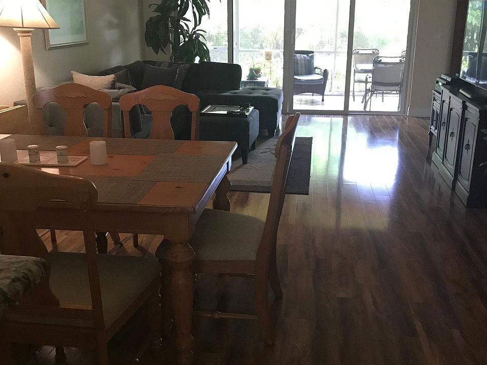 Open floor plan Beautiful Hardwood floors Private Screened patio overlooking canal One car garage Private driveway Single story with screened entry Washer & dryer Move in ready Need HOA approval Owner pays water and LRECD (sewer)