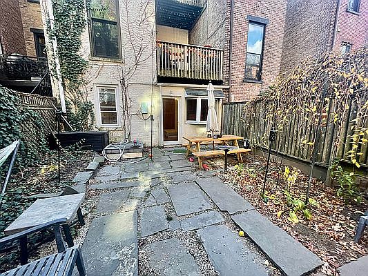 Rent this two bedroom townhouse apartment with huge garden, perfectly located on Berkeley Place in charming North Park Slope. Only one block from Prospect Park and subways, you will have your own private mini-park where you can grow flowers, barbecue, or just relax in your hammock. Hardwood floors, decorative fireplace, exposed brick walls give it a townhouse charm. Versatile layout allows for two bedroom or a one bedroom with separate living room or home office. Laundry in building as well as bike storage.