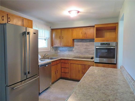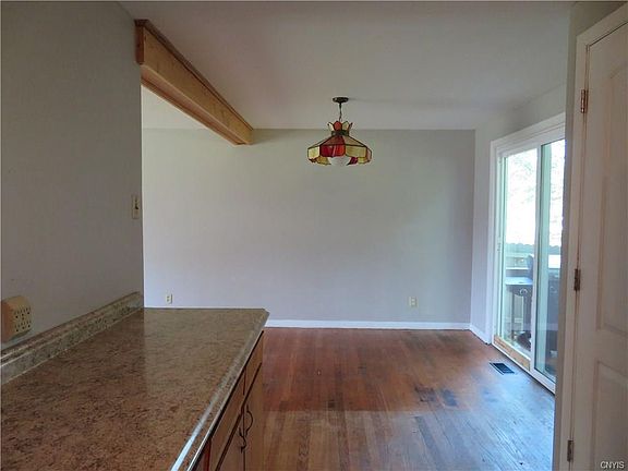 This is it! Check out this split level ranch in the Bayberry community area in Liverpool. Larger 4 bedrooms and 2 1/2 baths. Rooms are spacious and there is still so much you can add to this home to make it your own. New laminate counters with back splash and electric cook top just installed. Windows replaced and roof only 2 yrs old. Hardwood floors throughout most of the home. Large backyard with no homes behind you to entertain guests or family on your back deck. The winters will be warm with your wood burning fireplace. The basement is partially finished for a man cave, children play area, or extra family room. Close to shopping, bus routes, schools and highways. Don't miss this chance to see this awesome home and live in a great area of Liverpool.