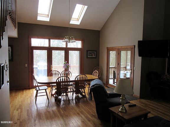 Three bedroom three bath contemporary retreat nestled on .81 wooded acres. Upper level features master bath with large bathroom and whirlpool tub. Main level has kitchen, dining room combination with access to the deck and screened porch. Spacious living area with wood burning fireplace. Lower level has walk out to a hot tub for enjoyment year round, plus a second wood burning fireplace. Tucked away with privacy and currently licensed for rental. Offered for sale furnished with some exclusions.