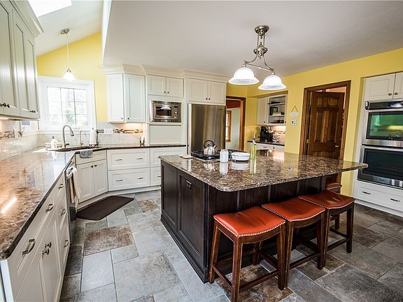 The main level has so much to offer - A bright and clean eat-in kitchen with a large center island, double ovens, walk-in pantry and skylights opens right to the main living room with brick fireplace, wet bar and double french doors leading to the expansive deck, gazebo and fire pit on 1 private acre! Additionally on the first floor is the laundry, half bath, private home office, large family room and dining room with decorative crown molding On the second level is an impressive Owner's suite with vaulted ceilings, bathroom with stand alone soaking tub, walk-in closet, 3 additional bedrooms and a massive 5th bedroom over the garage. The lower level is the ideal man cave, complete with bar area, pool table, full bathroom with urinal, an enclosed cigar humidor room, plus two bonus rooms that could make a total of 7 bedrooms! The 3 stall garage with high ceilings has access to laundry and basement.