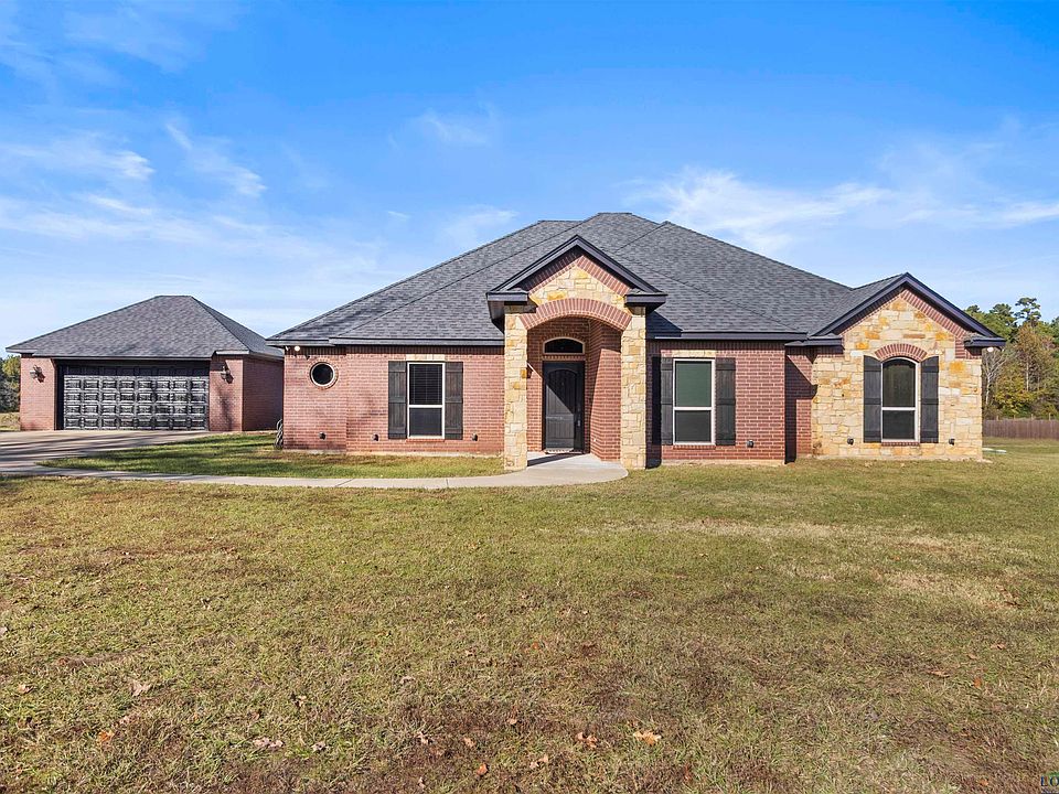 Welcome home to this beautiful property in Hallsville ISD! 4 beds, 3.5 bathrooms and on 2.3 acres - there is plenty of room to build a shop or a pool! Wood floors throughout with high ceilings and an open floorplan. 2 primary bedrooms - each with their own en-suite bathrooms - plus 2 more guest rooms. Fresh paint in many rooms and freshly stained cedar accents. Stainless appliances and granite counters in every bathroom. Spacious pantry and good sized covered back patio. Great rural setting - but still close enough to the fun.