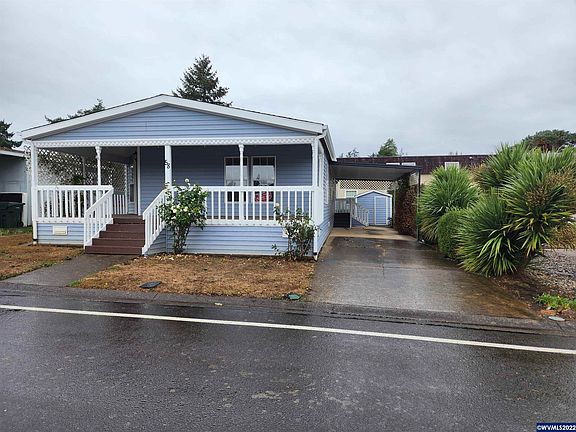 Enjoy your days on the covered front porch. This roomy 3 bed 2 bath MH in 55+ park. Master suit has a soaking tub and walk in closet. Covered parking, shed and yard out back. Roof 2007, new paint and some floors