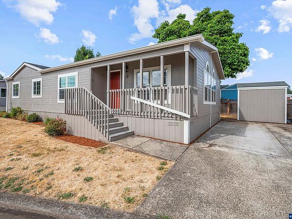 Fully renovated MH in this South Salem 55+ Park. This home brings a lot of natural light and has an open floor plan with brand new Mohawk Laminate floors throughout. The kitchen has granite counter tops and all SS appliances. Main bathroom has a brand new shower and double vanity. The extra wide hallway gives it an easy access to the bedrooms and the hall bath. The spacious laundry room has access to the back yard and a new small back patio. The outside hosts a storage shed and a 12x20 brand new carport.